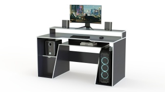 Игровой стол Диего-10 BMS отличается футуристичными формами и стильной асимметрией. Модель со скошенными фасадами и боковиной выполнена в нейтральном черном цвете с белой кромкой и эффектно смотрится в современном интерьере. Столешница с эргономичным вырезом дополнена надстройкой под монитор и периферийные устройства, для размещения системного блока и рабочих материалов предусмотрены ниши и глухое отделение. Купить игровой стол Диего-10 BMS вы сможете на сайте нашего интернет-магазина.