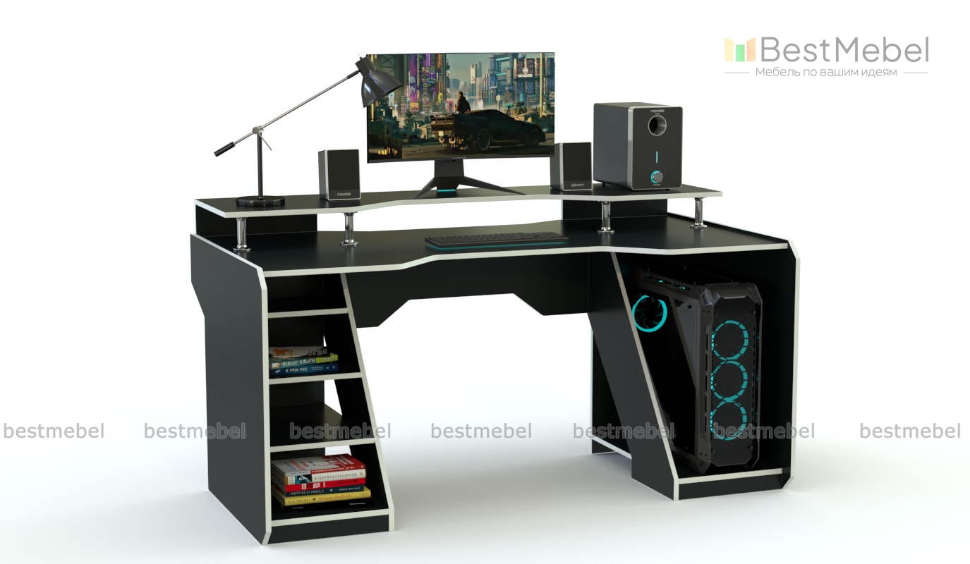Игровой стол Техно 2.14 BMS – это креативный дизайн и отличная эргономика рабочего места. Двухтумбовый стол с просторной рабочей поверхностью безопасно скошен по углам и выполнен в черном цвете с белой кромкой. Модель оборудована надстройкой на хромированных опорах для размещения монитора и периферийных устройств, нишей под системный блок и открытыми полками разной ширины для удобного хранения рабочих материалов. Купить игровой стол Техно 2.14 BMS вы сможете на сайте нашего интернет-магазина.