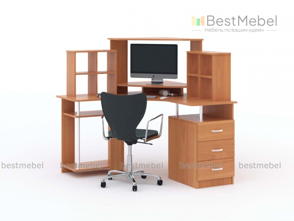 Компьютерный стол Арсенал 3 BMS имеет угловую конструкцию, позволяющую компактно разместить все необходимое для комфортной работы. На эргономично вырезанной столешнице располагается надстройка с полками для мелочей и периферийных устройств, а под столом - ниша под системный блок и предназначенная для бумаг тумба. Ламинированные поверхности отличаются прочностью и долговечностью, углы безопасно закруглены. Купить компьютерный стол Арсенал 3 BMS вы сможете в нашем интернет-магазине, подобрав цвет по каталогу.