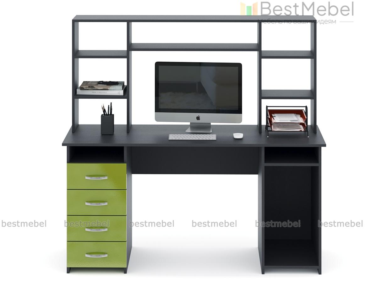 Компьютерный стол Милак глянец 13 BMS отличается визуальной легкостью и вместительностью. Благодаря продуманной конструкции стол обеспечит комфортную работу, разместив все необходимое под рукой. Модель в эффектном сочетании темных тонов и цветного глянца оборудована широкой столешницей, двумя тумбами – с выдвижными ящиками и нишами, и легкой надстройкой с открытыми полками для книг, аппаратуры и оргтехники. Купить компьютерный стол Милак глянец 13 BMS по демократичной цене вы всегда сможете в нашем интернет-магазине.