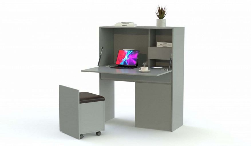 Компьютерный стол-трансформер Давид 4 BMS станет выбором тех, кто ценит минимализм и функциональность. Компактный шкаф с лаконичным фасадом, выполненный в сером цвете, легко вписывается в большинство современных интерьеров. Вы сможете использовать модель с распашным отделением и открытой верхней полкой для хранения книг, папок и прочих материалов, а при помощи откидной столешницы и выкатной тумбы с сиденьем получить комфортное рабочее место. Купить компьютерный стол-трансформер Давид 4 BMS приглашаем в наш интернет-магазин.