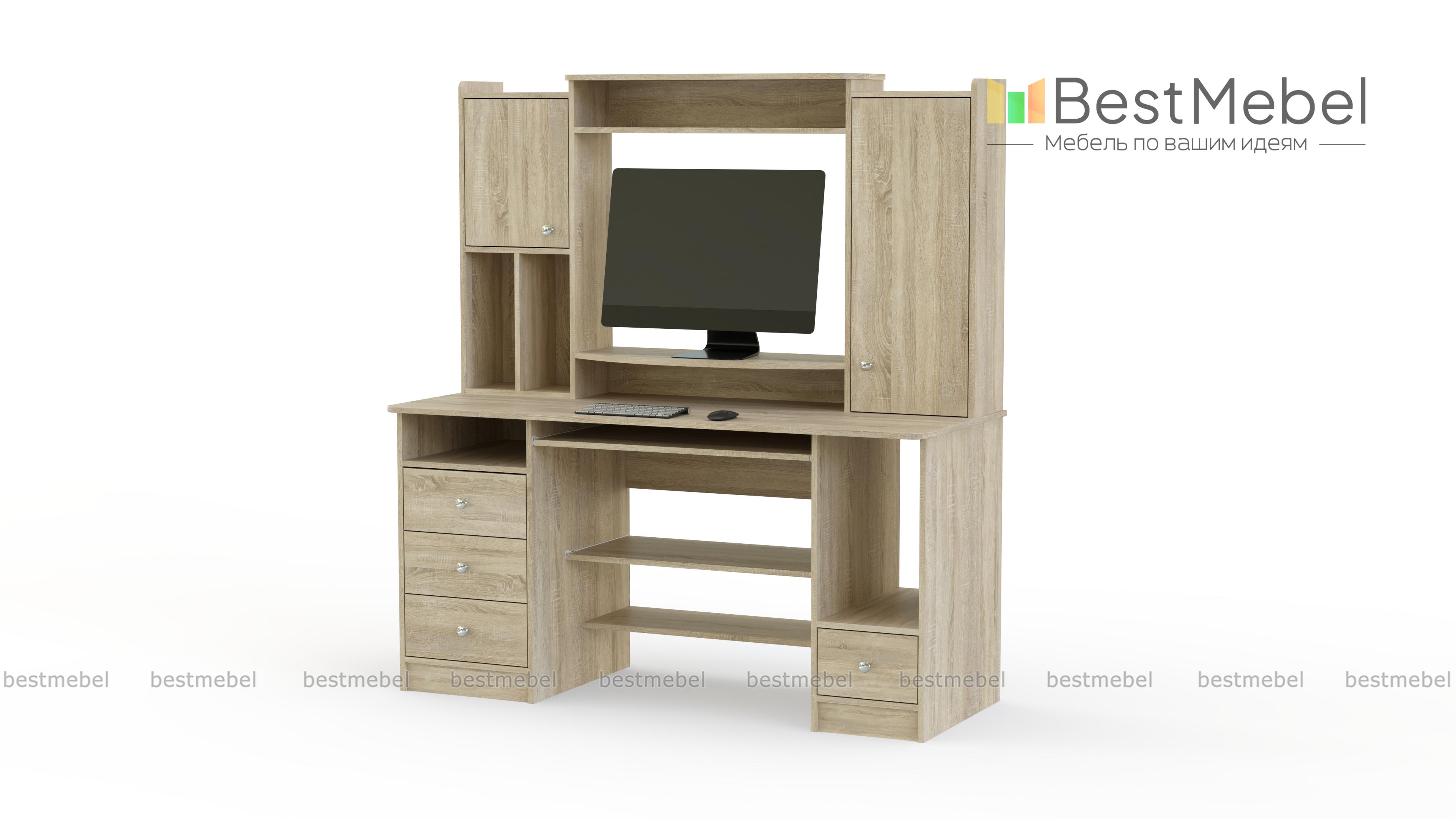 Стол компьютерный СК Планета 5 BMS поможет даже на небольшом пространстве обустроить комфортное рабочее место. Модель имеет надстройку с нишей под монитор, шкафчиками и полками для периферийных устройств, а под столешницей расположены выдвижные ящики, отделение для системного блока и полки. Скругленные углы столешницы и боковин делают пользование комфортным и безопасным. Купить стол компьютерный СК Планета 5 BMS приглашаем в наш интернет-магазин, подобрав фурнитуру и цвет по каталогу.