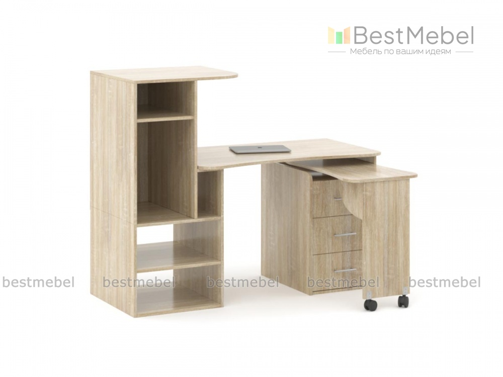 Стол компьютерный Каспер 4 BMS поможет разместить под рукой все необходимые рабочие материалы, канцелярские мелочи и оргтехнику. Многофункциональная модель оборудована тумбой с тремя выдвижными ящиками и нишей и стеллажом с открытыми полками разных размеров. Благодаря поворотной столешнице на хромированных опорах с колесиками прямой стол с легкостью превращается в угловой. Купить стол компьютерный Каспер 4 BMS приглашаем в наш интернет-магазин с выбором цвета и фурнитуры.