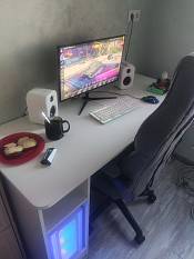 Компьютерный стол очень удобный. Все устраивает. Хорошо вписался в интерьер. Рекомендую.