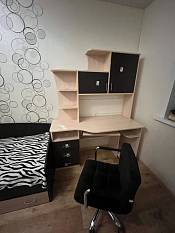 Стол получился очень хорошим. Брали его с расчётом, чтобы можно было также делать уроки и заниматься другой всякой всячиной. Поэтому глубину столешницы увеличили до 800 мм и сделали её прямой, без сужений. Надстройку растянули, чтобы ниша под монитор получилась максимально широкой (получилось 1148 мм), чтобы правая стойка не мешала работать. Результат на фото. Столешницу взяли потолще, 22 мм, так смотрится посолиднее, и не страшно, если целевой пользователь на неё ногами залезет)Собирал сам. Учтите, что для самостоятельной сборки надо иметь минимальные навыки, т.к. подробной инструкции по применению крепежа и последовательности сборки нет. Есть схема расположения деталей и, что очень удобно, каждая деталь имеет наклейку с номером по списку и названием. Не надо гадать, что куда ставится.Без маленькой ложки дёгтя не обошлось, увы. Отверстия крепления надстройки с одной стороны оказались строго над стойкой, стяжки не вставить. Пришлось снимать столешницу, крепить к ней надстройку, и вместе с надстройкой устанавливать на место. Повезло, что было кому помочь, в одиночку я бы такой фокус провернуть не смог. Конструкторы, это ваша недоработка. И неудобно, что не размечены места крепления полки под клавиатуру. В остальном всё отлично. Очень удобно, что можно изменять конструкцию под свои требования. Все пожелания были учтены, конструкторы отвечают очень оперативно. Изготовили и доставили стол быстро и в оговоренные сроки.