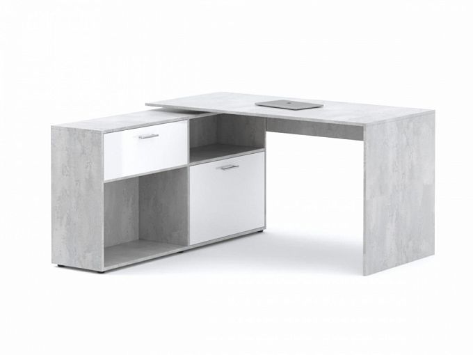 Стол компьютерный Тиссо 3 BMS с несколькими вариантами трансформации гармонично впишется в интерьер и сделает рабочий процесс максимально комфортным. Композиция из прямого стола и широкой опорной тумбы выполнена в актуальном сочетании имитации поверхности бетона и белого глянца. Два выдвижных ящика и две открытые секции компактно разместят папки и книги, канцелярские мелочи, предметы декора и оргтехнику. Купить стол компьютерный Тиссо 3 BMS и рационально использовать пространство вам поможет наш интернет-магазин.