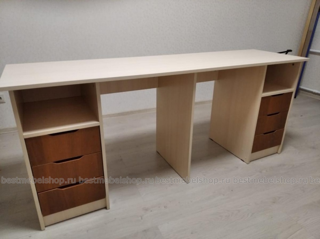 У нас два школьника,очень удобный стол. Никто никому не мешает,у каждого свое рабочее место. Изготовили по нашим размерам. Муж собрал очень быстро. Очень удобно тем,что много ящиков.