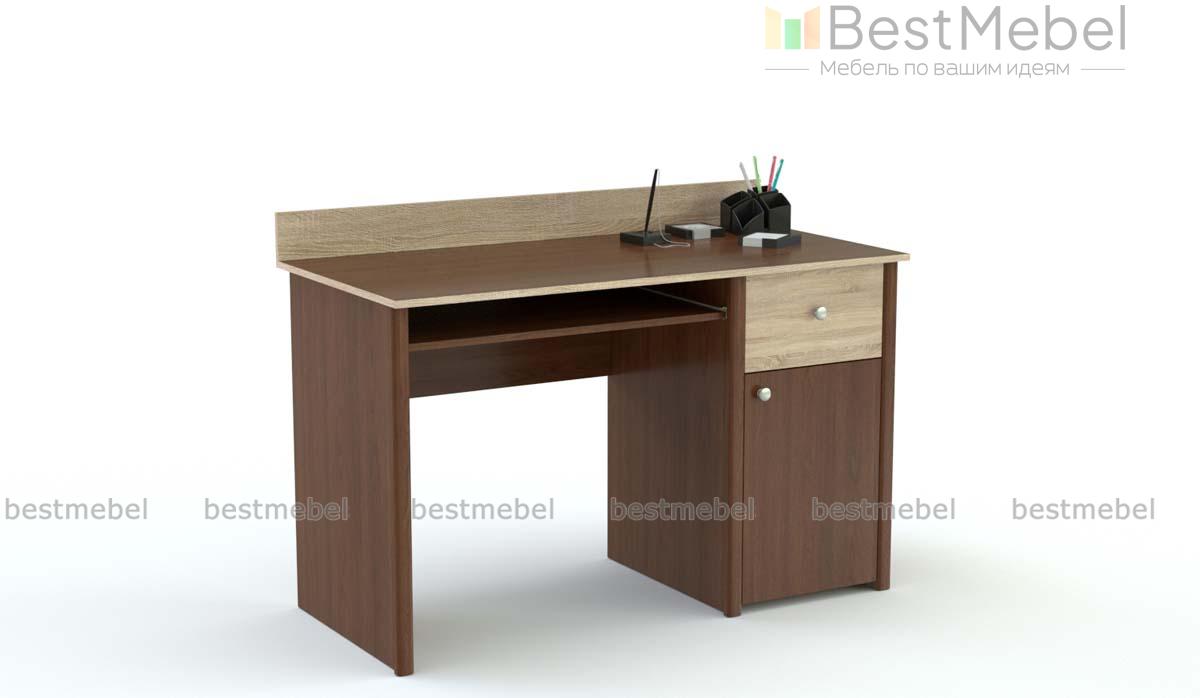 Письменный стол ИД 01.20 BMS выполнен из ламинированной плиты древесных тонов, а в роли акцентов выступают контрастная отделка и декоративные накладки. Благодаря бортику вдоль задней стенки письменные принадлежности и ноутбук будут защищены от случайного падения. Стол оборудован тумбой с выдвижным ящиком и распашным отделением для хранения рабочих материалов и выкатной полкой для клавиатуры. Купить письменный стол ИД 01.20 BMS с учетом оптимальных размеров и цвета вы сможете в нашем интернет-магазине.