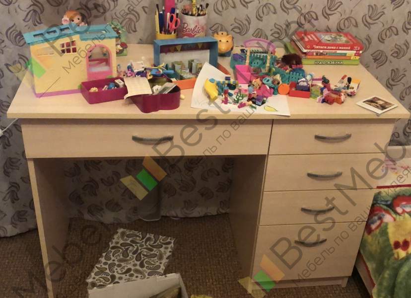 Заказ 00000278422Долго выбирала хороший письменный стол. Мне важно было наличие комфортных вместительных ящичков для хранения и цвет, чтобы подходил к имеющийся мебели в комнате. Здесь мне понравилось, что я сама смогу выбрать дизайн и цвет и более того, заказать любой параметр, от высоты, ширины и цвет фурнитуры. На сайте все изложено простым и доступным языком. Менеджер быстро перезвонил и принял заказ, изготовили очень быстро. Стол пришёл качественный, сборщик собрал его. Столом очень довольны, он вписался в интерьер, крепкий, надежный. Ничего не шатается, ящички плавно выдвигаются. Покупкой более, чем довольна.