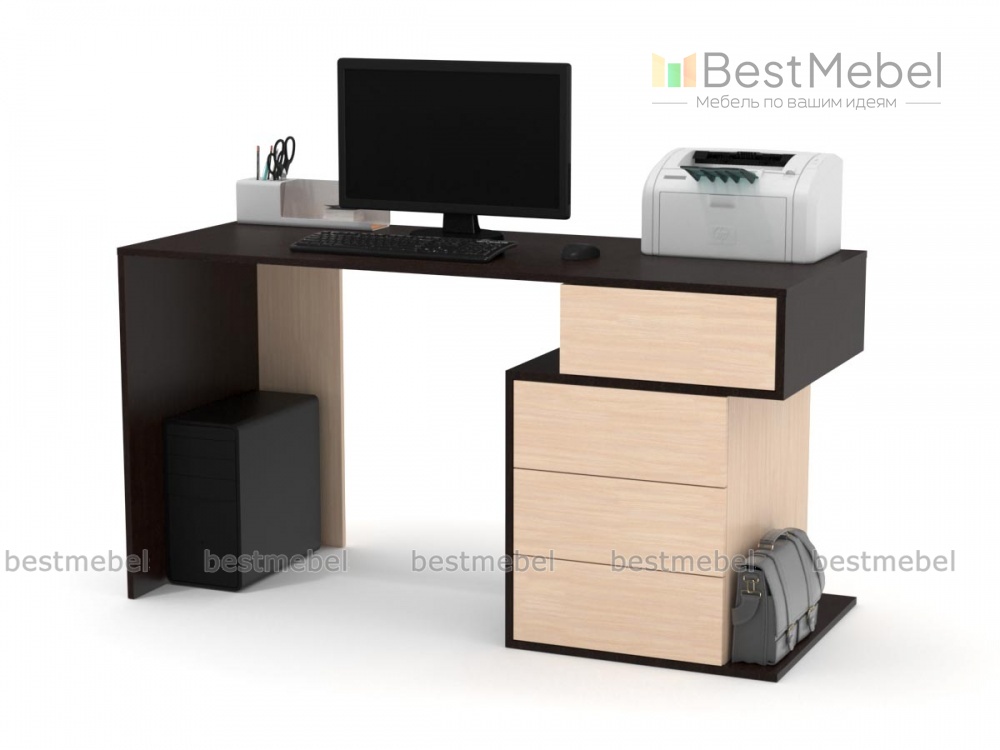Письменный стол Стайл-2 BMS будет отлично смотреться в современной молодежной комнате, подчеркнув динамичный характер интерьера. Креативная модель в контрастных древесных тонах оборудована просторной прямоугольной столешницей, удобной для письменных работ и размещения компьютера, а также стильной асимметричной тумбой с выдвижными ящиками для хранения канцелярских принадлежностей. Купить письменный стол Стайл-2 BMS по лучшей цене вы сможете в нашем интернет-магазине.
