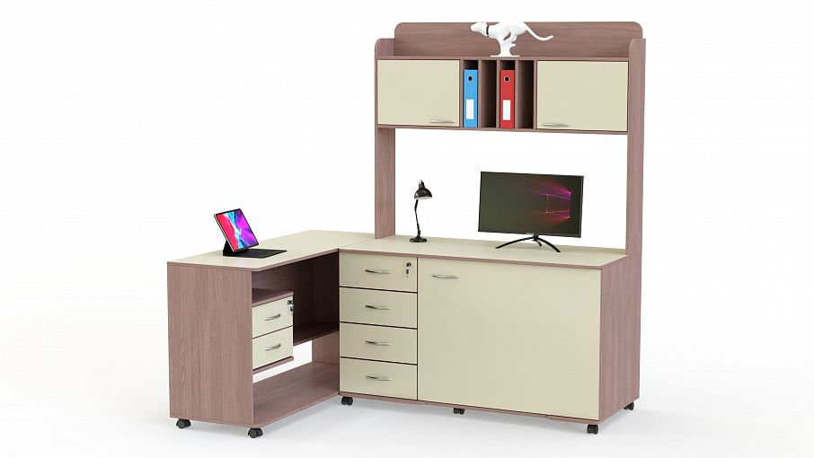 Письменный стол Юниверс 13 BMS – это модульная композиция из двух передвижных столов – письменного и компьютерного с надстройкой. Комбинируя модули по своему вкусу, вы сможете подобрать наиболее комфортный вариант. Разместить в зоне быстрого доступа все необходимые рабочие материалы и периферийные устройства помогут тумбы с выдвижными ящиками, открытые и глухие полки, а также скрытое за распашной дверцей внутреннее отделение. Купить письменный стол Юниверс 13 BMS приглашаем в наш интернет-магазин.