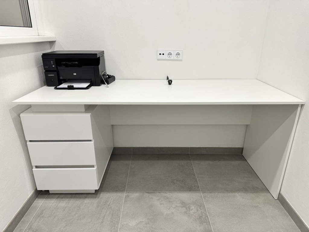 Заказ 00000246775, изделие Стол с ящиками Квинта 7 BMS (1800х770х700)Отличный стол прекрасного качества. размер, цвет, расположение ящиков подбирали на сайте под заказ. Все получилось в точности как и хотели! Спасибо!