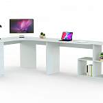 Угловой письменный стол для двоих Калифорния 13 BMS поможет обустроить комфортные места для учебы и творческих занятий. Модель экономно использует доступное пространство и позволяет разместить канцелярские мелочи, книги, игрушки и многое другое. Просторная, эргономичной формы столешница опирается на тумбу с выдвижными ящиками и два стеллажа, оборудованных открытыми секциями. Купить угловой письменный стол для двоих Калифорния 13 BMS для современной детской приглашаем в наш интернет-магазин.