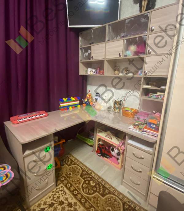 №00000507856 Угловой письменный стол для двоих с надстройкой Пилот 60 BMS (1400х1700х600),Покупкой довольны. Стоимость устроила. Необходим был стол в детскую, была договоренность доставки на определенную дату, привезли вовремя. Заблаговременно позвонили. Собирается стол просто, собирали сами. Инструкция имеется в комплекте, понятная на одном листке. Все детали привезли. Стол соответствует описанию. Смотрится интересно, ящичков достаточное количество. Ящики не больших размеров, для книг и канцелярии. Столешница цельная. Крепится к боковым ящикам и дну под столешницей. Момент: столешница крепится на саморезы и шпунты деревянные. На шпунты лучше не крепить, саморезов достаточно. Так как столешница не широкая по толщине, и если шпунт вставить он может легко сделать отверстие в столешнице насквозь и повредить ее целостность. Данные размеры стола не позволяют разместиться двум деткам, лучше брать больше размерами стол. Так как стол стоимостью более 25 тыс в подарок есть возможность выбрать за 1 рубли любую из предложенных товаров еще.