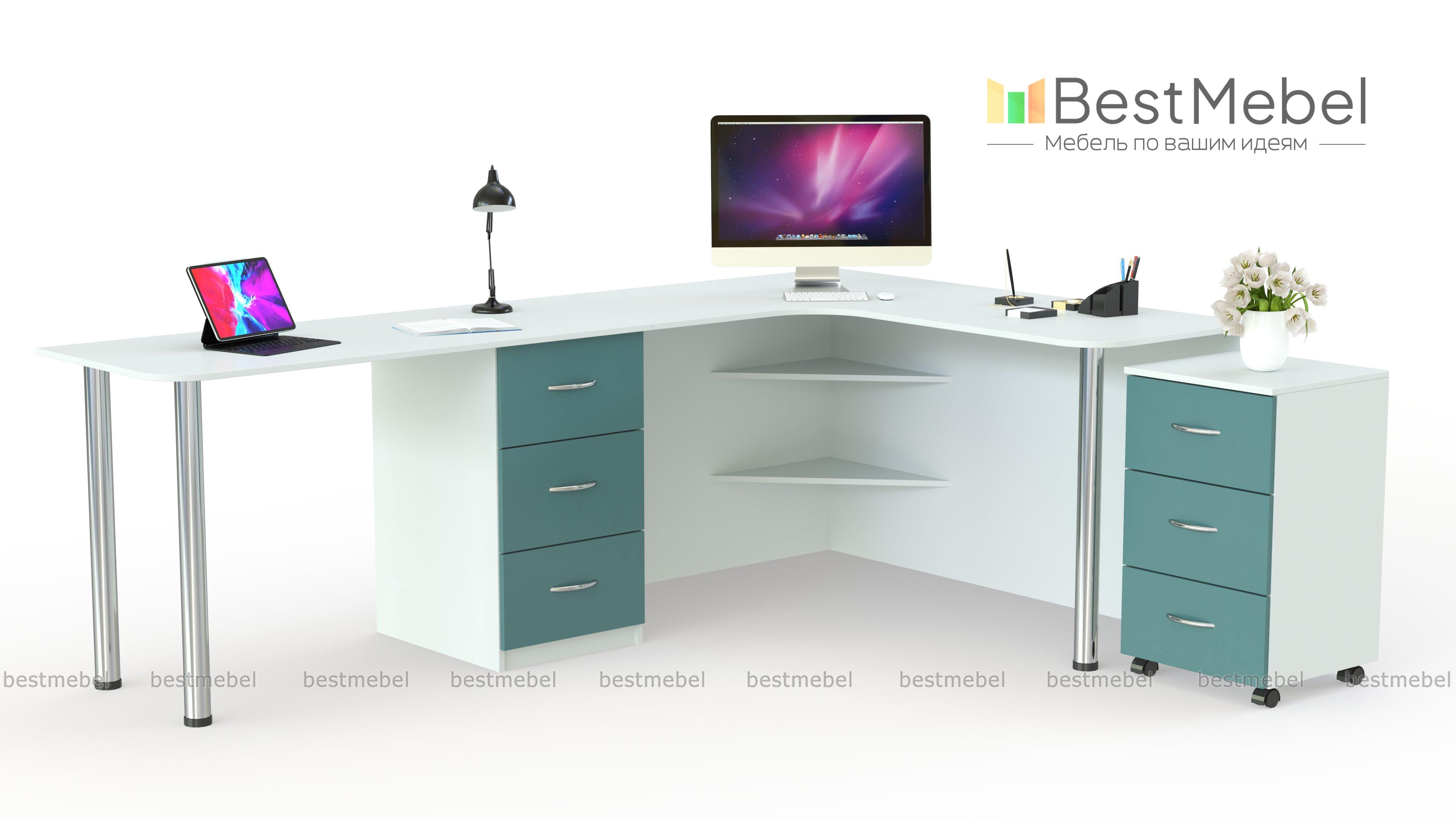 Угловой письменный стол для двоих Виктория 17 BMS сочетает в себе практичную конструкцию, современный дизайн и доступную цену. Модель позволит выгодно использовать угловое пространство и сэкономить полезную площадь комнаты. Устойчивый благодаря регулируемым опорам стол имеет просторную рабочую поверхность, дополнен стационарной и мобильной тумбами, а также открытыми нижними полками. Купить угловой письменный стол для двоих Виктория 17 BMS вы сможете в нашем интернет-магазине.