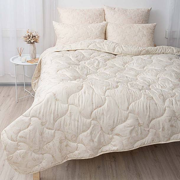 Одеяло овечья шерсть 300 поплекс прекрасно пропускает воздух и сохраняет тепло поэтому подойдет для любого сезона. Чехол выполнен из прочного полиэстера с оригинальным принтом и фигурной многоигольной прострочкой, надежно фиксирующей наполнитель и сохраняющей пышность одеяла. Наполнитель состоящий из натуральной овечей шерсти и синтетического волокна, гигроскопичен, дает комфортное сухое тепло и безопасен для аллергиков. Купить Одеяло овечья шерсть 300 поплекс вы сможете по доступной цене в нашем интернет-магазине.