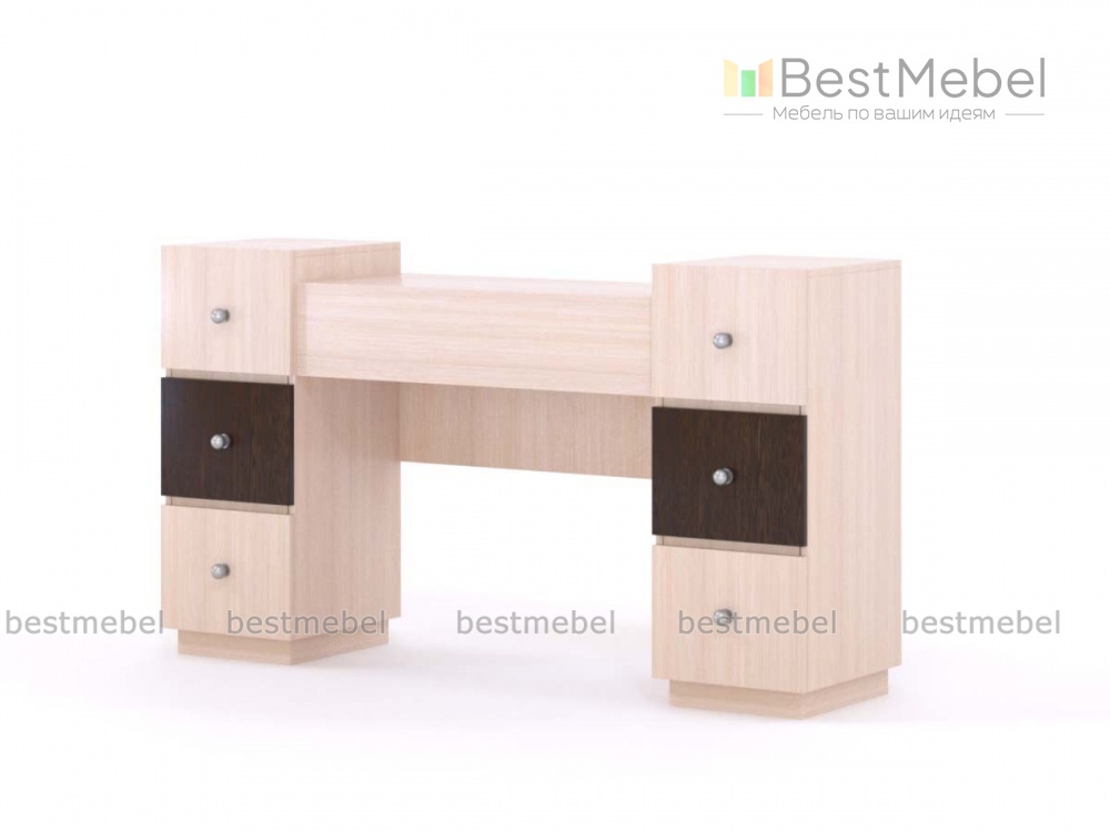 Стол туалетный Никки 1 BMS отличается элегантным геометричным дизайном и выполняется в древесных оттенках на выбор. Модель дополнит меблировку современной спальни и сделает комфортным уход за собой. Для удобного хранения косметики, аксессуаров и украшений предусмотрены две тумбы на высоких цоколях, оборудованные выдвижными ящиками, и центральный широкий ящик под столешницей. Купить стол туалетный Никки 1 BMS вы всегда сможете в нашем интернет-магазине по доступной цене.