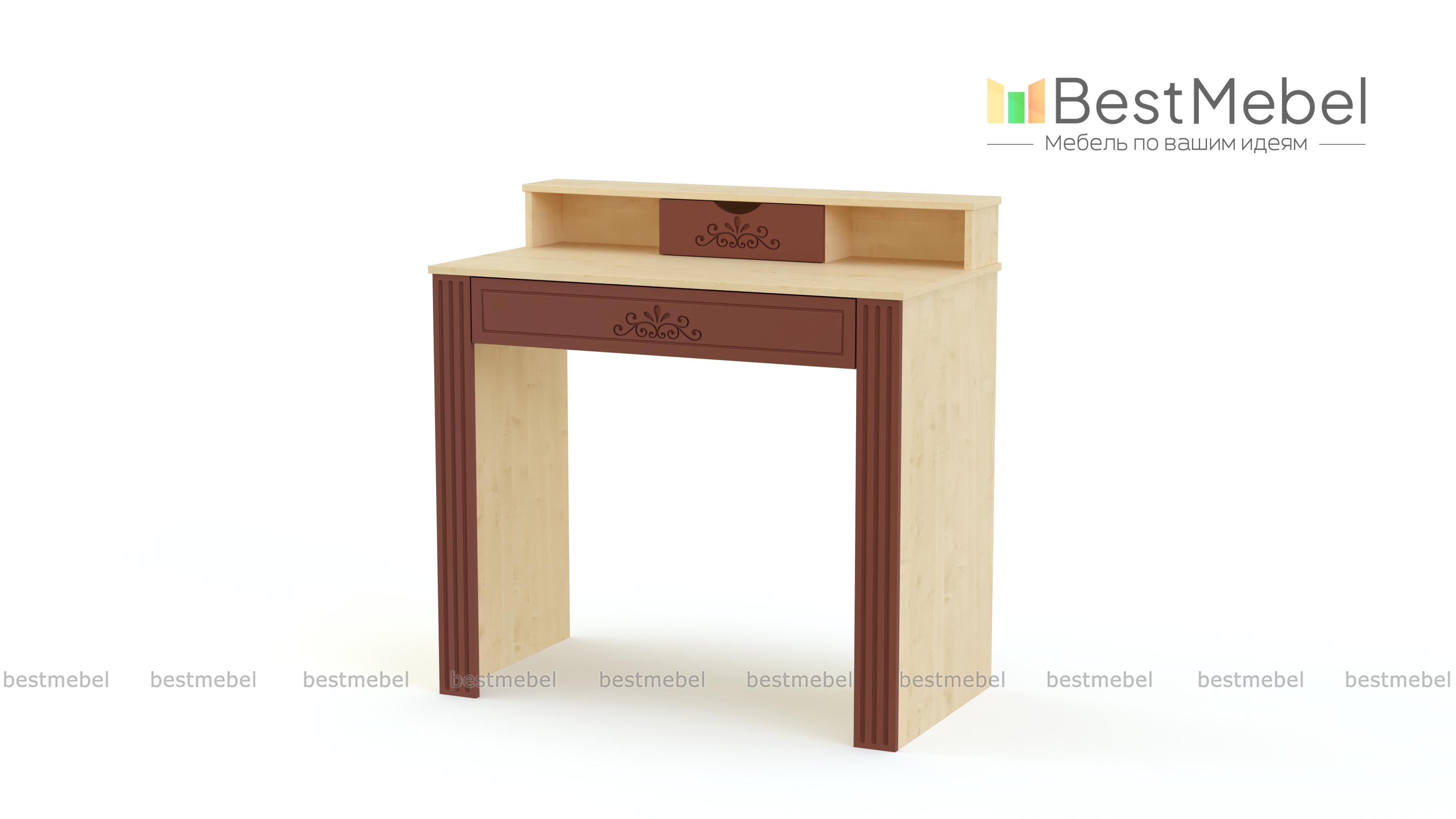 Трюмо Жаклин Д-11 BMS выполнено в универсальных темных тонах и украшено по фасаду изящной фрезеровкой. Модель гармонично дополнит интерьер спальни в классическом стиле и сделает уход за собой комфортным. Трюмо оборудовано просторной столешницей с выдвижным ящиком для мелочей и надстройкой, оборудованной нишами и миниатюрным ящичком. Устойчивость конструкции обеспечивают широкие боковины с накладками. Купить трюмо Жаклин Д-11 BMS вы сможете по выгодной цене в нашем интернет-магазине.