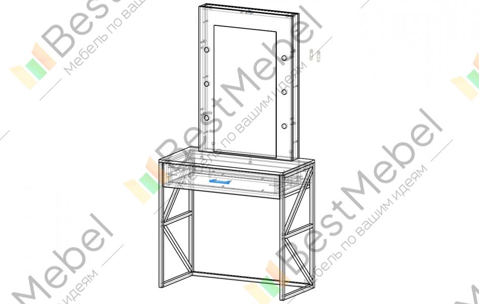 Туалетный стол Кино 12 BMS – это элегантная модель в индустриальном стиле. Выполненный из ЛДСП с имитацией поверхности бетона, макияжный столик располагается на прочном металлическом каркасе с фигурными боковинами. Для комфортного ухода за собой, хранения косметики и аксессуаров модель оборудована вместительным выдвижным ящиком и зеркалом со встроенной по бокам подсветкой. Купить туалетный стол Кино 12 BMS приглашаем в наш интернет-магазин с возможностью выбора цвета и размеров.