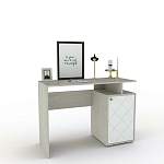 Туалетный столик Хайк 12 BMS станет отличным дополнением современного спального интерьера. Для удобного хранения необходимых под рукой уходовых средств однотумбовая модель оборудована распашным отделением с полками и нишами, а зеркало будет располагаться на просторной прямоугольной столешнице. Корпус светлых древесных тонов красиво сочетается с белым глянцевым фасадом, декорированным фрезеровкой ромбами. Купить туалетный столик Хайк 12 BMS вы сможете выгодно в нашем интернет-магазине.