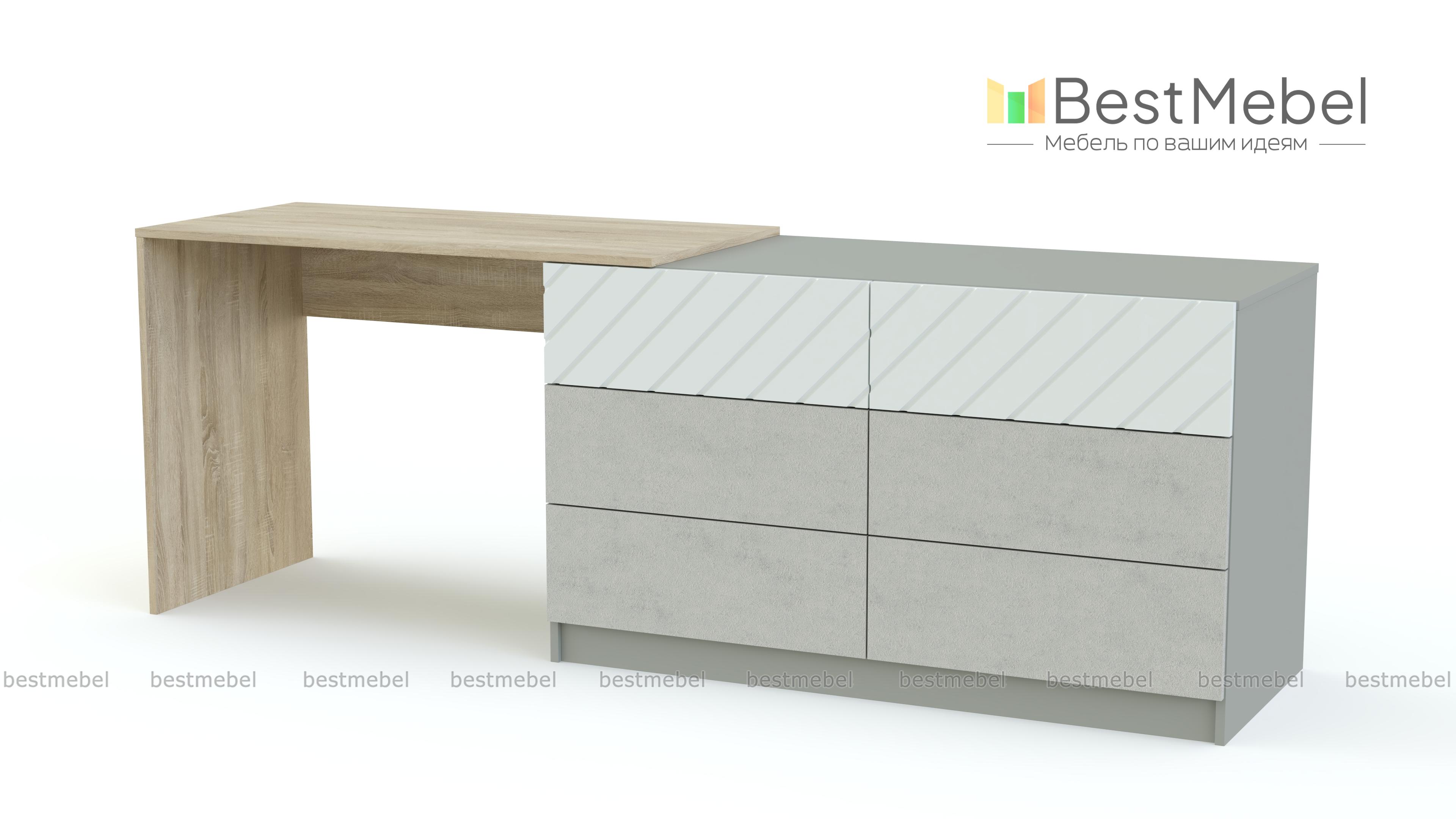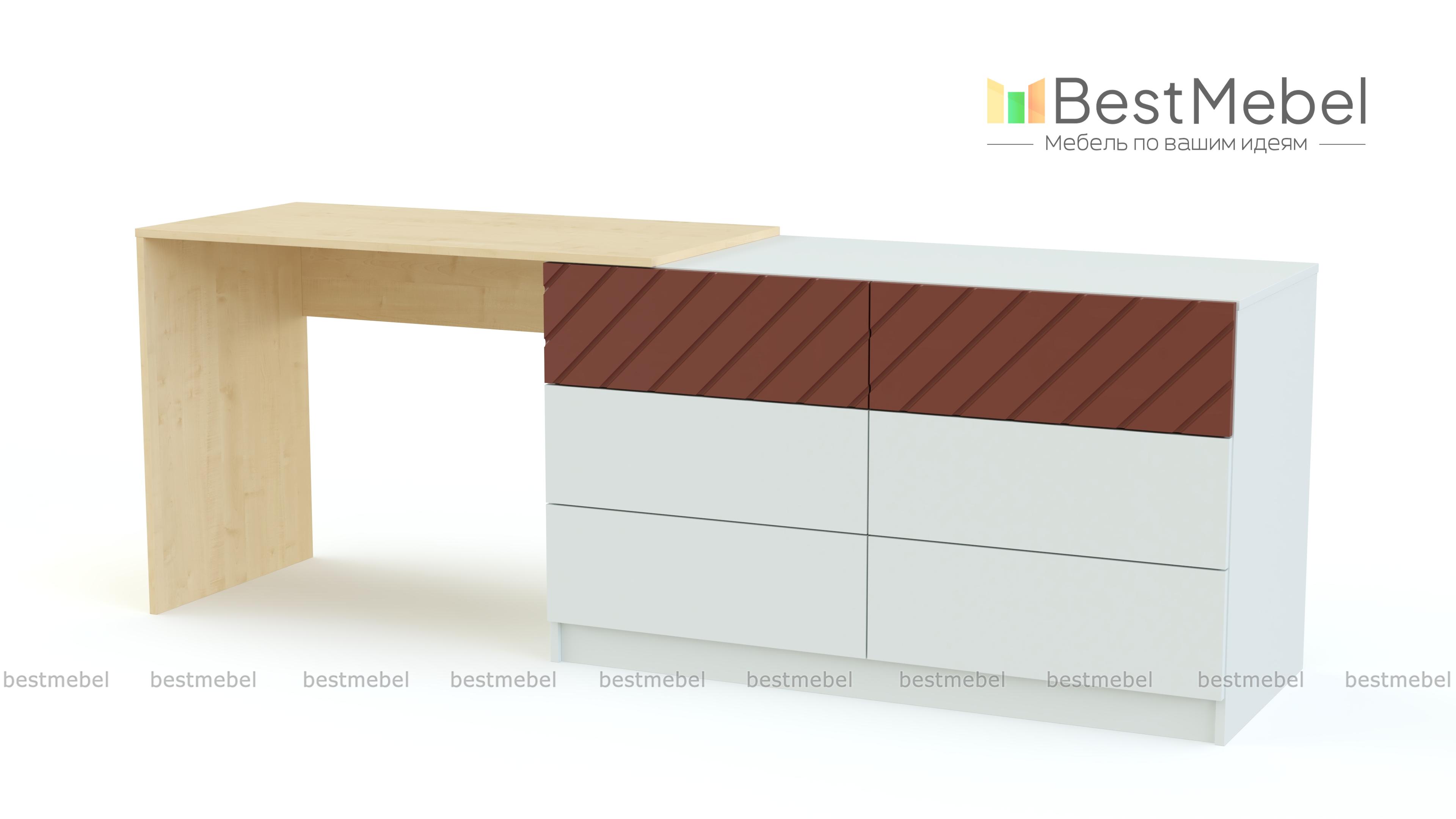 Туалетный столик Перси BMS станет практичным решением для небольших спален, позволяя разместить домашний текстиль и уходовые средства, интересно оформить зону ТВ и поработать за ноутбуком. Многофункциональная модель представляет собой классический комод с шестью выдвижными ящиками, совмещенный со столом. Светлый матовый эффектно скомбинирован с поверхностями в насыщенных древесных тонах. Купить туалетный столик Перси BMS по выгодной цене приглашаем в наш интернет-магазин.