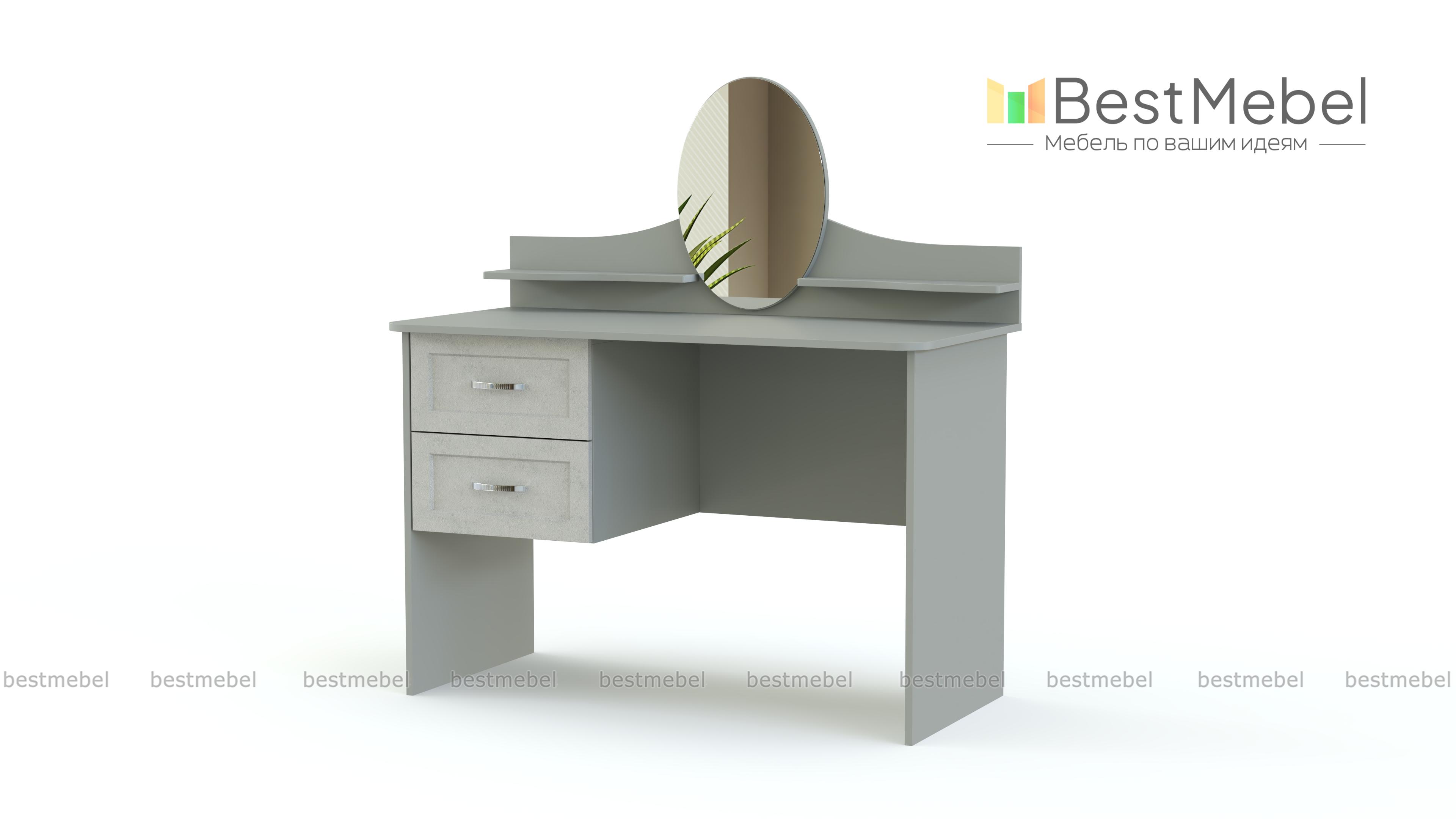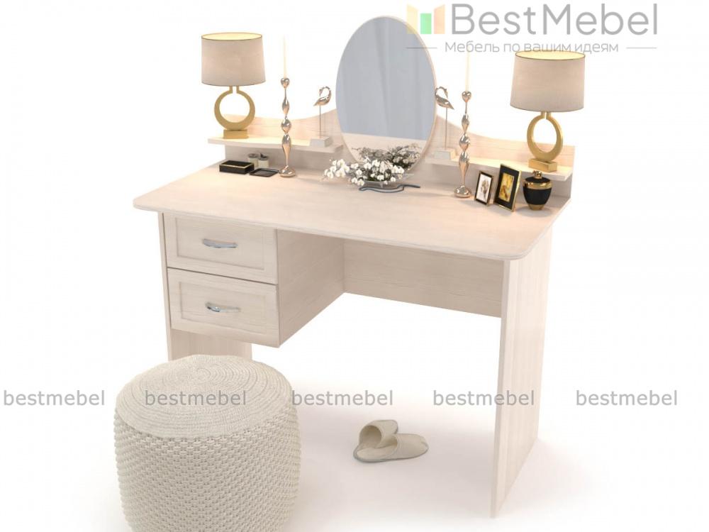 Элегантный классический столик для уютной спальни в стиле прованс. Модель обладает характерными для мебели этого типа плавными изгибами, богатым декором фасадов и выполняется в светлых тонах. Для украшений и парфюмерных флаконов по бокам небольшого овального зеркала располагаются две изящные полочки, углы широкой столешницы безопасно скруглены. Хранить под рукой необходимые вещи будет просто с выдвижными вместительными ящиками. Туалетный столик Шери BMS непременно порадует вас и доступной ценой.