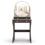 Еще одна романтичная классическая модель для придания законченного образа спальне в стиле прованс или бохо-шик. Легко ее представить и в загородном доме. Женственное круглое зеркало отлично гармонирует с двумя рядами вместительных ящичков для косметики и парфюмерии. Дополняют образ изящно вырезанные боковины, контраст темного и светлого цвета и оригинальная, немного ретро, отделка и фурнитура. С туалетным столиком СТ №3 BMS уход за собой будет настоящим удовольствием.
