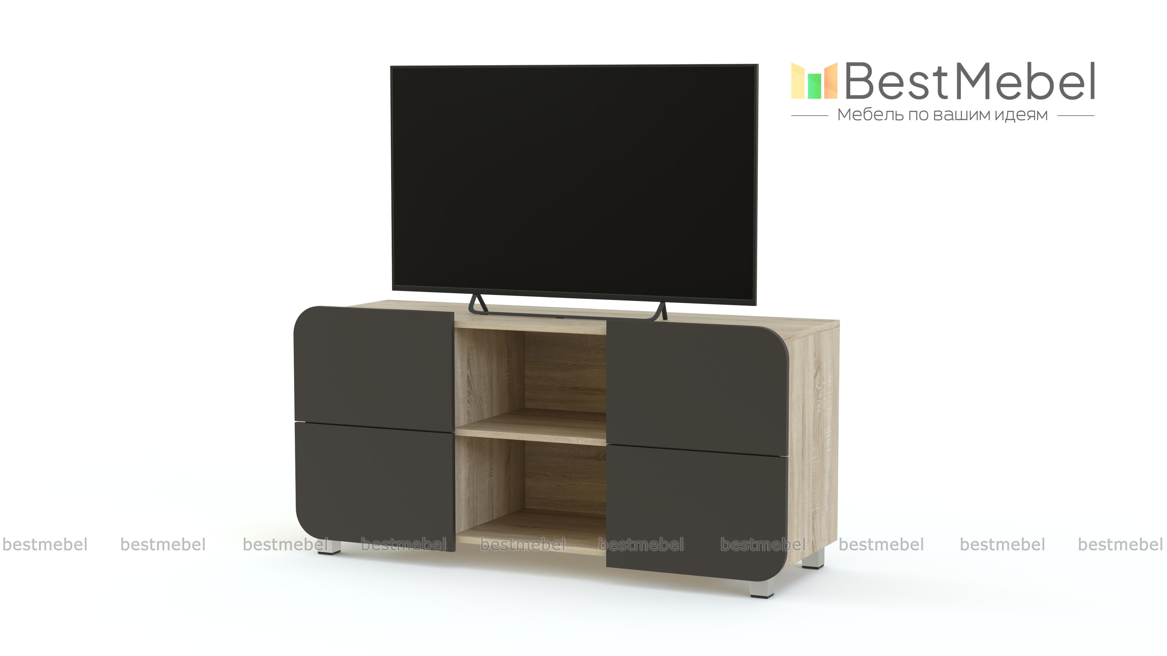 Тумба под ТВ Модерно 3.1 BMS станет стильным акцентом в интерьере современной гостиной. Компактная, но вместительная, модель оборудована просторной столешницей, двумя открытыми полками в центре и выдвижными ящиками со скругленными матовыми фасадами по бокам. Продуманная конструкция позволит разместить не только технику, но и предметы декора, книги и множество мелочей. Купить тумбу под ТВ Модерно 3.1 BMS, подобрав оптимальную расцветку, вы сможете в нашем интернет-магазине.