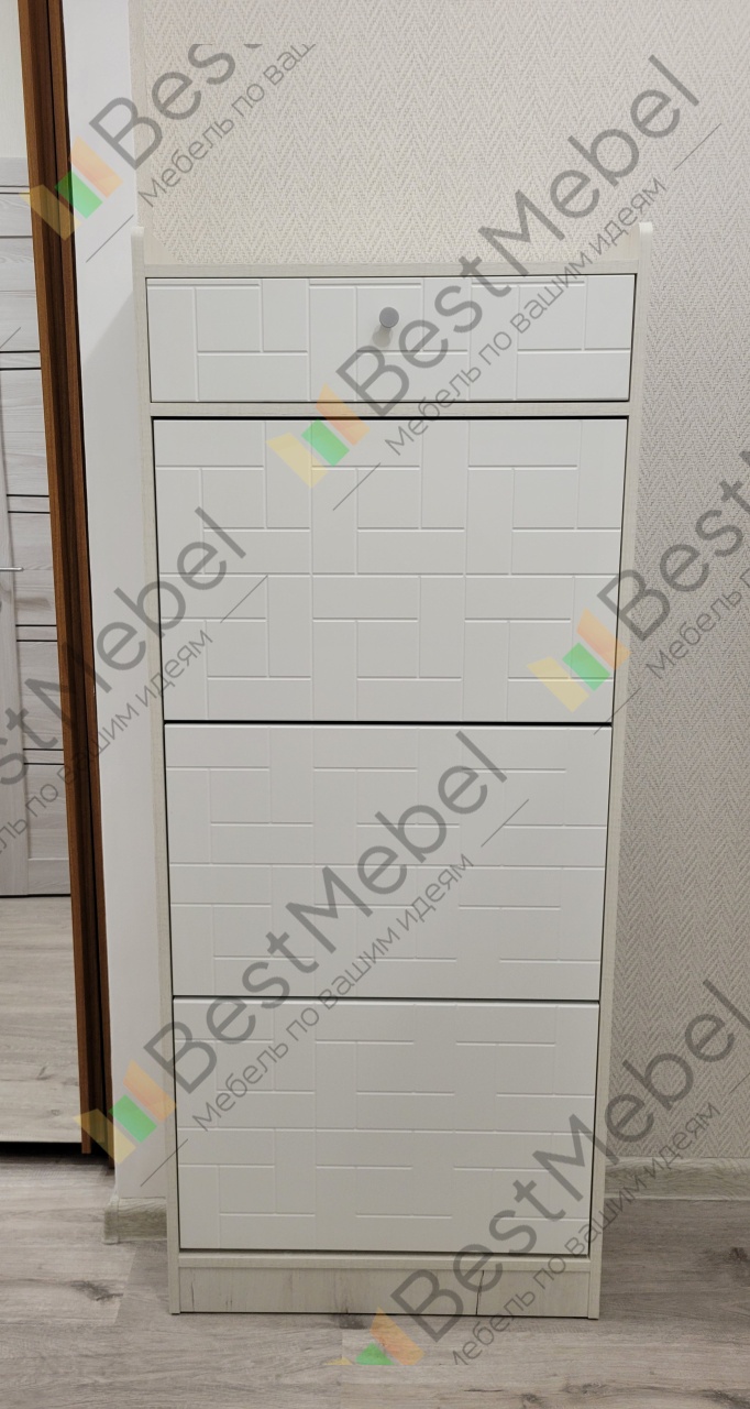 Обувница получилась отличная, вместительная и красивая! Заказывали по своим параметрам. Всё сделали на совесть. Собрали без проблем, очень довольны своим заказом.