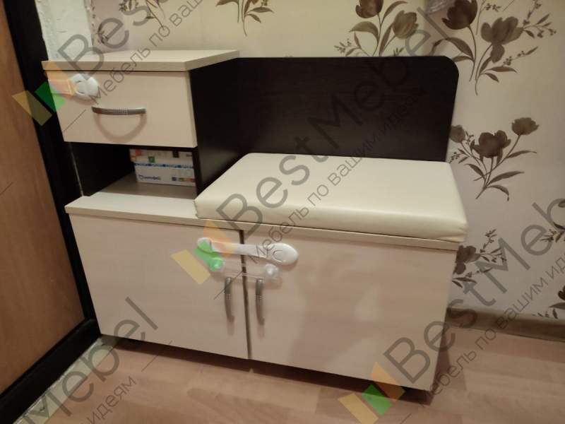 Качественная, недорогая и негромоздкая тумба для прихожей. Идеальный вариант для маленьких прихожих. Материал ДСП хороший. Коже-заменитель сидения достойного качества. Фурнитуру брал стандартную (не вижу смысла доплачивать за доводчики, стандарт тоже - норм). Сборка трудностей не вызывает (все детали и панели промаркированы и подписаны; шурупов и гвоздей производитель положил с лихвой). Полочки съемные - можно поставить даже сапоги. Цена-качество твердое 4,5 из 5.Мелкая инструкция по сборке. Печать инструкции плохого качества.00000593028 Изделие Тумба Аврора BMS (800х690х330).