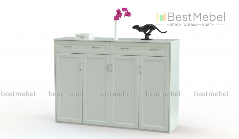 Тумба для белья Тевеция 5 BMS – это респектабельная классика для ценителей традиционных дизайнов. Широкая четырехдверная тумба с фрезерованными рамочными фасадами выполнена в белом цвете. Удобная система хранения для постельного белья, одежды и прочего домашнего текстиля включает в себя два выдвижных ящика и распашные отделения с полками, а на столешнице могут разместиться декоративные предметы. Купить тумбу для белья Тевеция 5 BMS приглашаем в наш интернет-магазин с учетом оптимальных размеров.