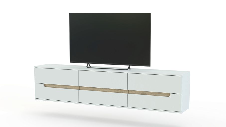 Тумба под ТВ подвесная Лори № 4 BMS поможет оформить уютную телезону в интерьере современной гостиной, спальни или молодежной комнаты. Подвесная конструкция экономно использует пространство и облегчает уборку, а удобная система хранения из шести выдвижных ящиков позволит разместить множество необходимых под рукой мелочей. В оформлении скомбинированы универсальные белые тона и декоративные вставки древесного цвета. Купить тумбу под ТВ подвесную Лори № 4 BMS приглашаем к нам в интернет-магазин.