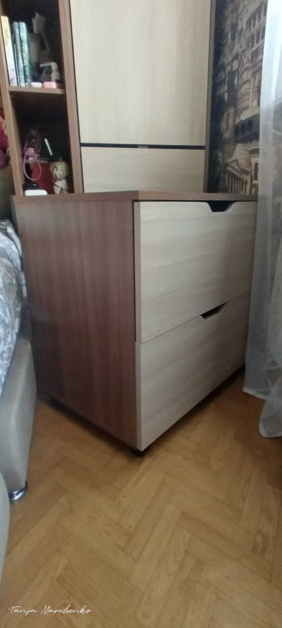 Отличная тумба. Собирается легко. Брала для хранения ниток. На верхний ящик пришлось установить магнит, так как кот очень легко его открывает и спит в нем))). Мой косяк в том, что нужно было глубину делать больше. Не все нитки влезли)))