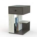 Тумба прикроватная Нильсон 13 BMS устойчива за счет сплошного основания и станет отличным вариантом кофейного столика. Оригинальная геометрия тумбы, оборудованной выдвижным ящиком и открытыми секциями, позволяет организовать удобное хранение книг, журналов и всевозможных мелочей. Для корпуса и фасада использован современный прочный материал – ламинированная плита с фактурой дерева и бетона. Купить тумбу прикроватную Нильсон 13 BMS приглашаем в наш интернет-магазин с выбором цвета и размеров.