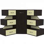 Необычная конструкция угловой тумбы Т-02 BMS привлекает к себе внимание и станет стильным акцентом в современном интерьере гостиной или офиса. Модель оборудована центральным распашным отделением и расположенными по бокам ступеньками вместительными выдвижными ящиками. Расцветка – контрастная в двух цветах на выбор. Простые геометрические линии и лаконичный декор станут интересным дополнением минималистичного оформления. В нашем интернет-магазине вы найдете на эту нестандартную тумбу приятные цены.