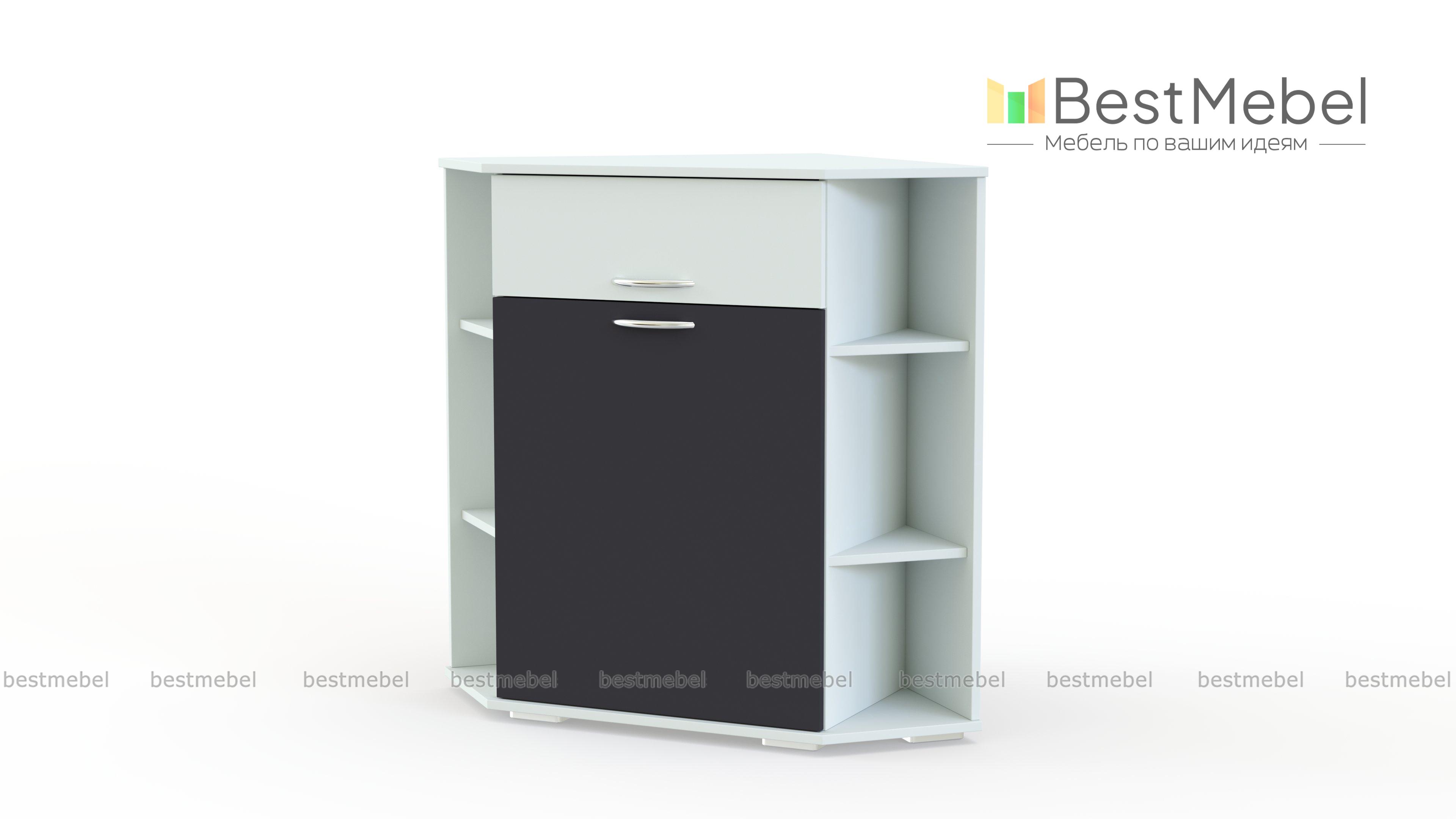 Тумба угловая Лайма BMS гармонично впишется в гостиные современного дизайна благодаря актуальному цветовому решению – светлые тона корпуса удачно сочетаются с фасадом в черном оттенке. Сэкономить полезную площадь комнаты поможет практичная форма, а вместительность обеспечат разноплановые отделения. Модель оборудована трапециевидной столешницей, выдвижным ящиком для мелочей, распашным отделением и боковыми открытыми полками. Купить тумбу угловую Лайма BMS приглашаем в наш интернет-магазин.