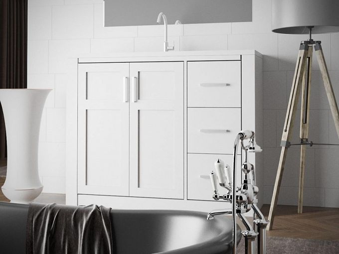 Большая тумба VA-02 BMS из высококачественных материалов создаст уют в вашей ванной, добавит интерьеру нотку роскошной практичности. Презентабельно и красиво смотрятся фасады распашных дверок и выдвижных ящичков, украшенные хромированными ручками-скобами. Все вещи, необходимые для использования в помещении ванной, будут аккуратно разложены по своим полочкам, это позволит сохранять порядок. Цвет изделия, как и габаритные размеры, вы можете легко изменить, если оформите заказ на нашем сайте. Пока цена остается удивительно привлекательной для наших клиентов.