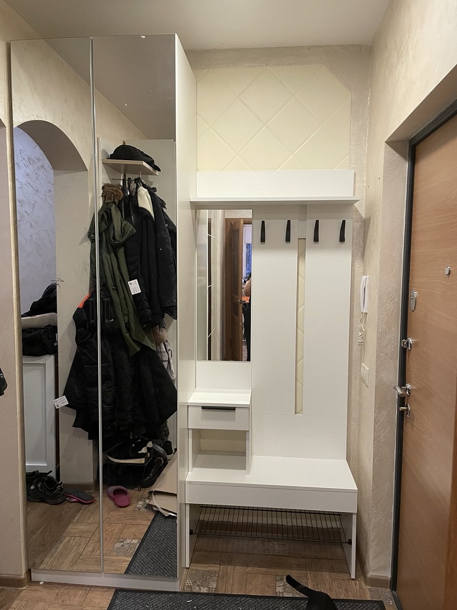 Хотел шкаф, но места мало. Нашёл на Ozon. Слегка выпивший, снял размеры. Шкаф пришёл — на место встаёт. А то, что не всё открывается, — это проблемы шкафа. Пришлось самому чуть‑чуть доработать, но это мой косяк. Шкафом доволен. Руководство по сборке почему‑то не открывается на компьютере; с телефона читать не очень удобно, но это не критично.