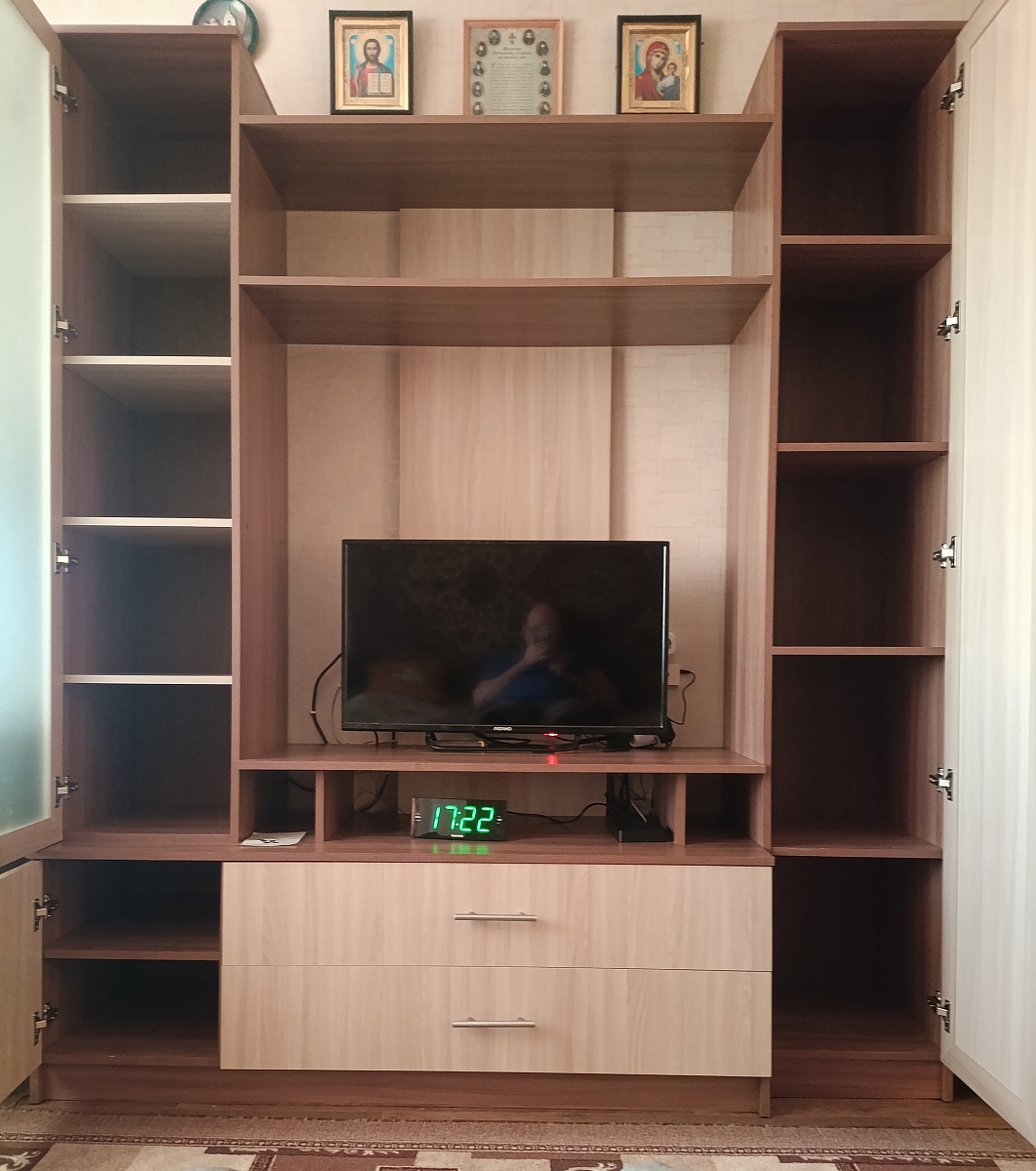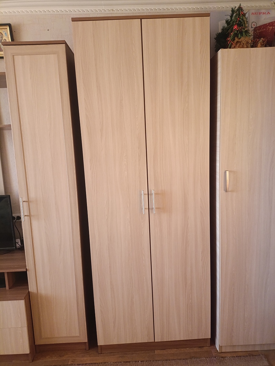 Офигенный шкаф, как раз то, что я искал. Хорошая сборка, всё плотно и ровно, никаких перекосов и сколов. К дверям тоже вопросов нет, катаются как по маслу. Работники тоже молодцы, сразу назвали дату доставки, за пару дней ещё раз позвонили уточнили сроки и возможность приёмки, никаких задержек, всё чётко. Есть только одно замечание : деталь Цоколь2 крепится к дну с помощью 2 конфирматов, а отверстия в ней были сделаны под 3 шканта, как в Цоколь1. Лично для меня не проблема, легко исправил, на внешний вид не влияет. Результатом доволен на все 100.