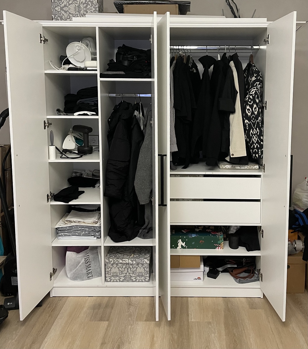 Заказ 00000258491, изделие ЭСКИЗ №00000258491 Шкафы-купе УЮТ 5 BMS (2000х2500х550) (Белье - Платье - Белье (4))Наш второй заказ в этом магазине. Заказывали через менеджера в шоу-руме, она учла все пожелания по размерам, цвету, фурнитуре и прочему. Можно было посмотреть и потрогать представленные образцы в офисе.Сам шкаф удобный в использовании, практичный, много места для хранения, двери двигаются плавно. Были некие косяки по системе направляющих, но мы не придали особое значение, чтобы сэкономить время, купили сами деталь, которая была сломана В целом довольны